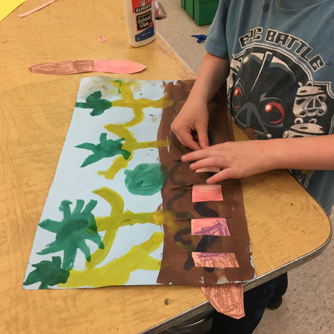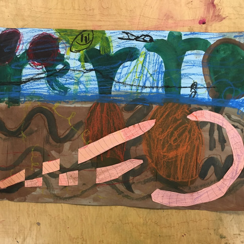 When your middle school opens up a worm farm you have to take advantage of it! Right? So.... of course I did. For the first day of this project Kindergarten students spent the day drawing from observation. I mean drawing real live worms from observation. Have I gone completely crazy!!! Did I mention I am not the biggest fan of creatures that don't have legs? Luckily I did not have to touch any and the middle school students were kind enough to put them in the petri dish. I had two petri dishes at each table and each dish had two wiggly live worms in it for the kids to observe. On the first day I instructed the students to draw two long worms that are not yet wiggly and just observe the colors they see on the worms. Students used pencils to sketch and crayons to add color. Then I had students stop and take some time to really observe the worms and draw two more worms as close as they could to what they saw. As you can imagine some of the completed drawings were pretty entertaining. But the kids loved getting to have worms in the classroom and how many times can an art teacher say they have warms in their refrigerator?